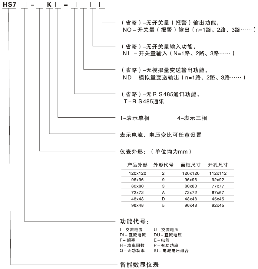 HS7系列智能數(shù)顯儀表能分別測量電網(wǎng)中的電流、電壓、有功功率、無功功率、功率因數(shù)、頻率和電能等電參量。電流電壓變比可通過面板按鍵開關(guān)設(shè)置,可選帶RS-485通訊接口、采用MODBUS協(xié)議、模擬變送輸出功能、開關(guān)量輸入輸出。